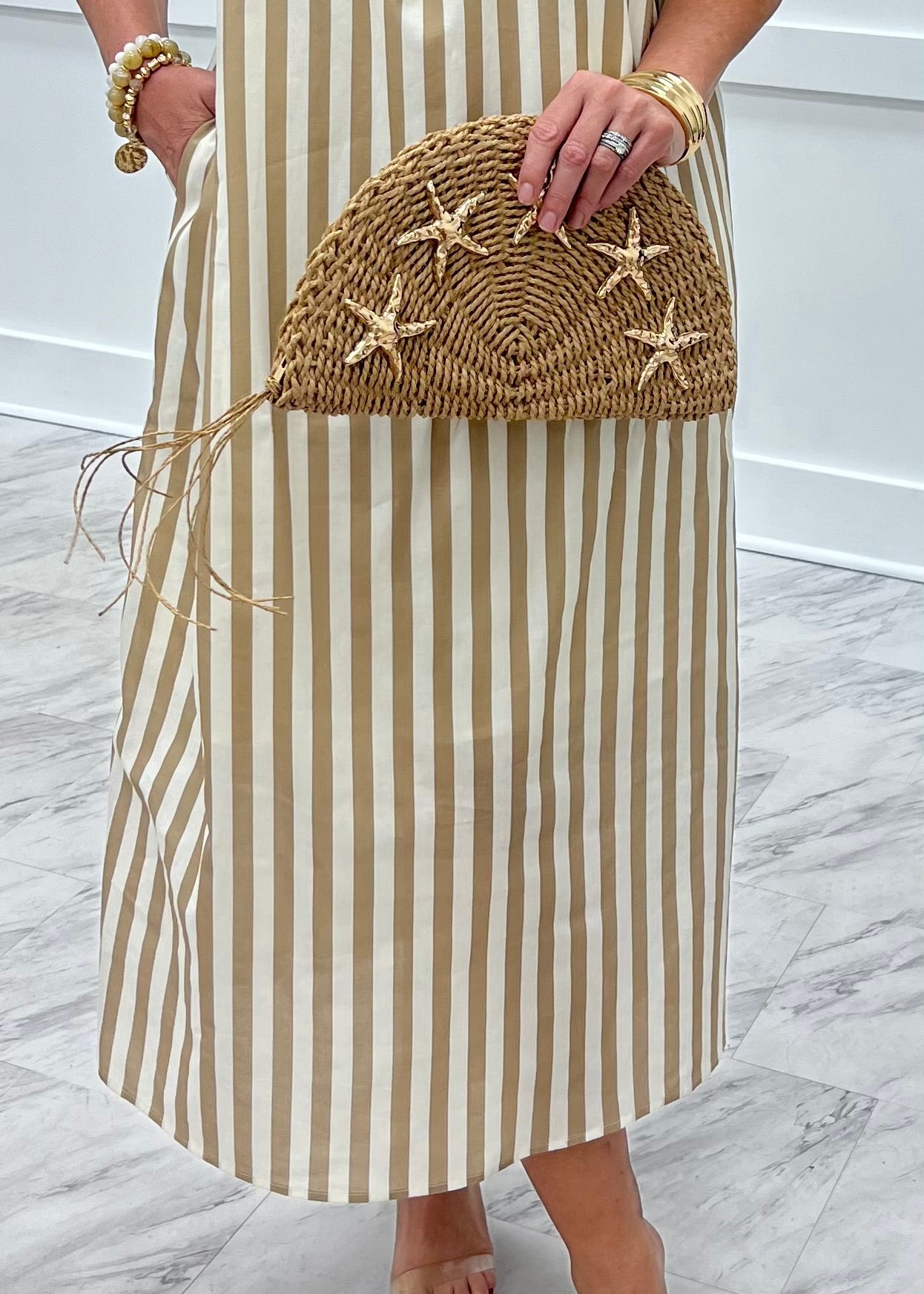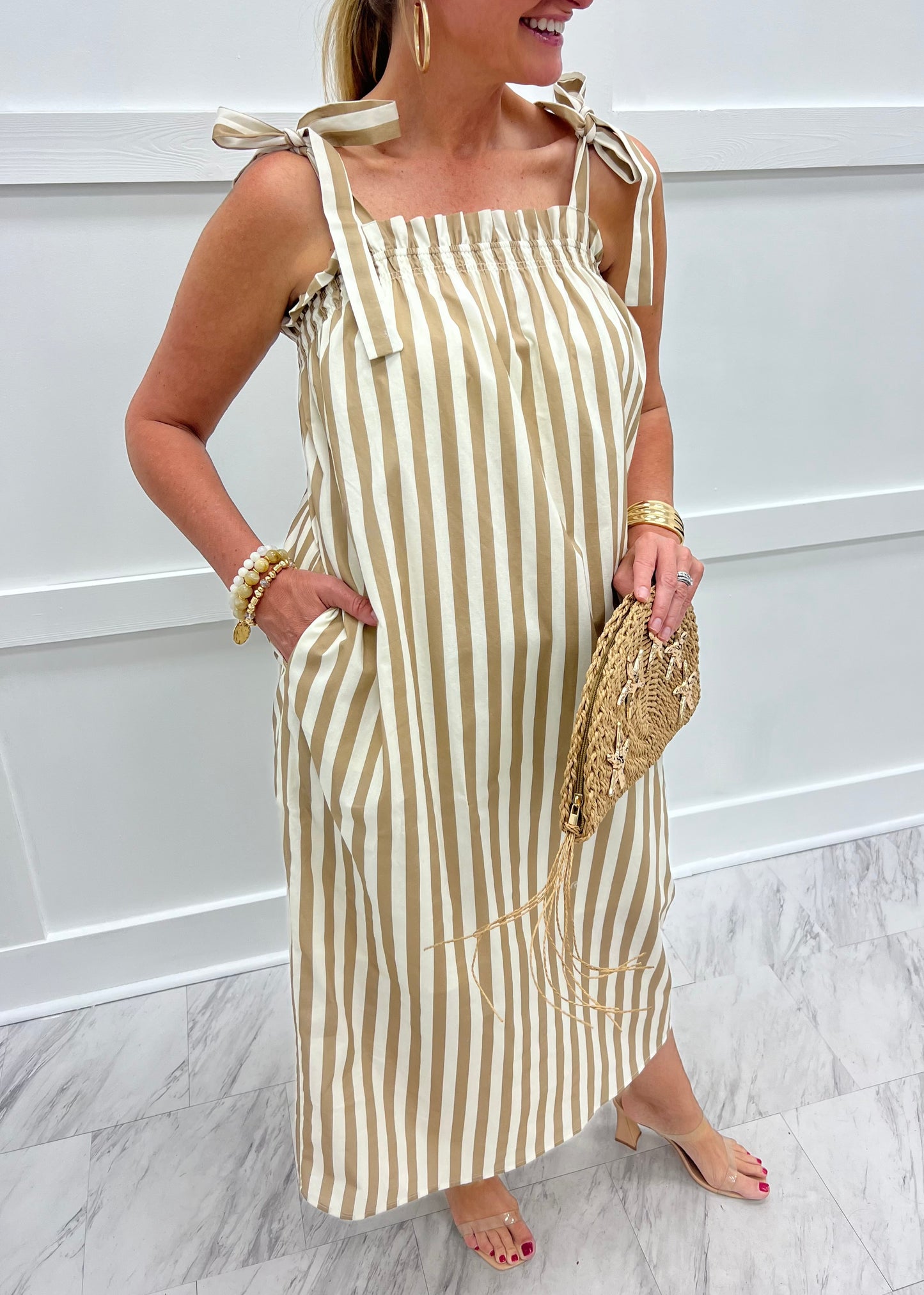 Estelle Stripe Midi Dress (Mocha)