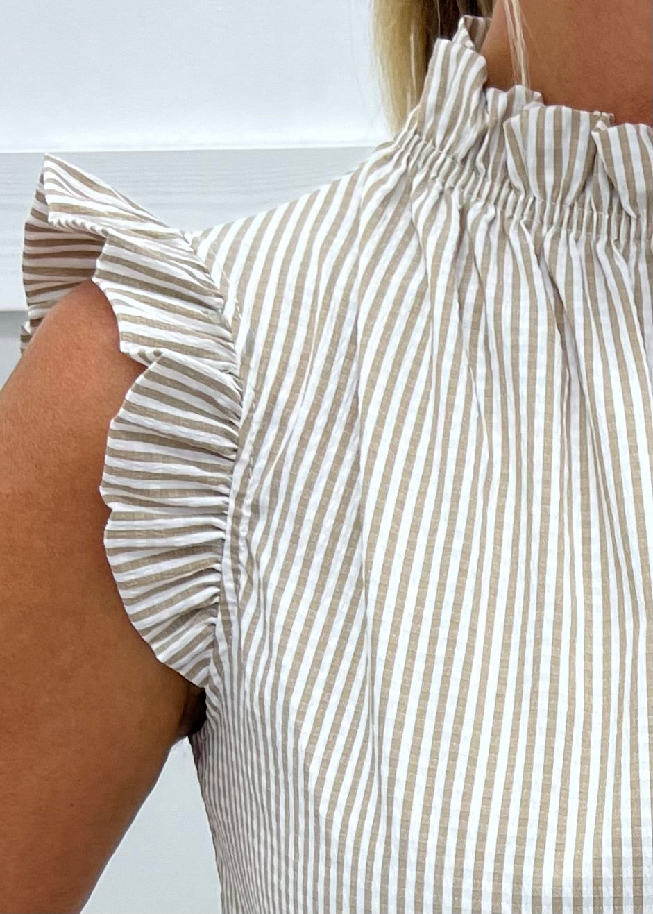 Splendid Seersucker Top (Taupe)