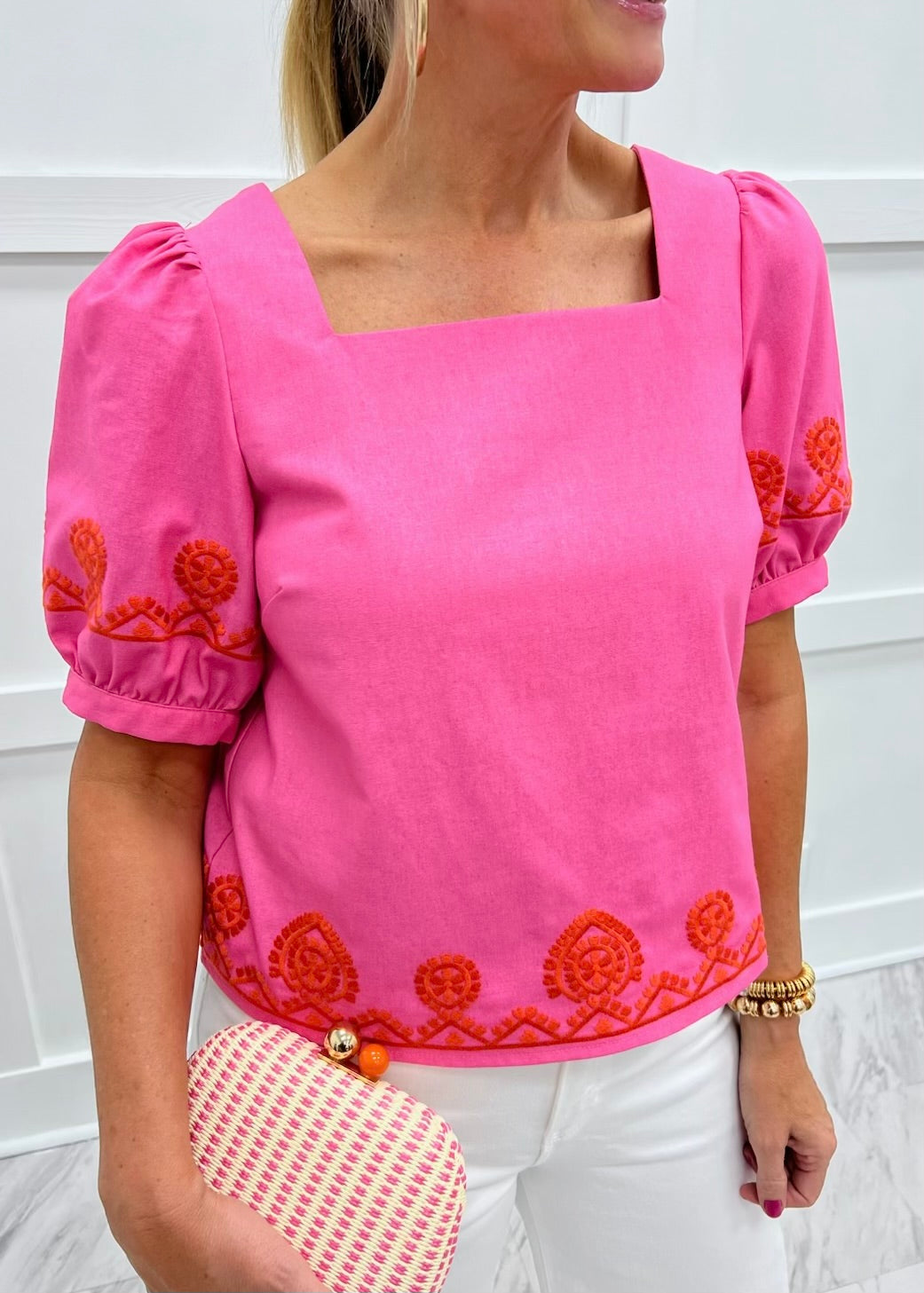 Serena Pink Embroidered Top