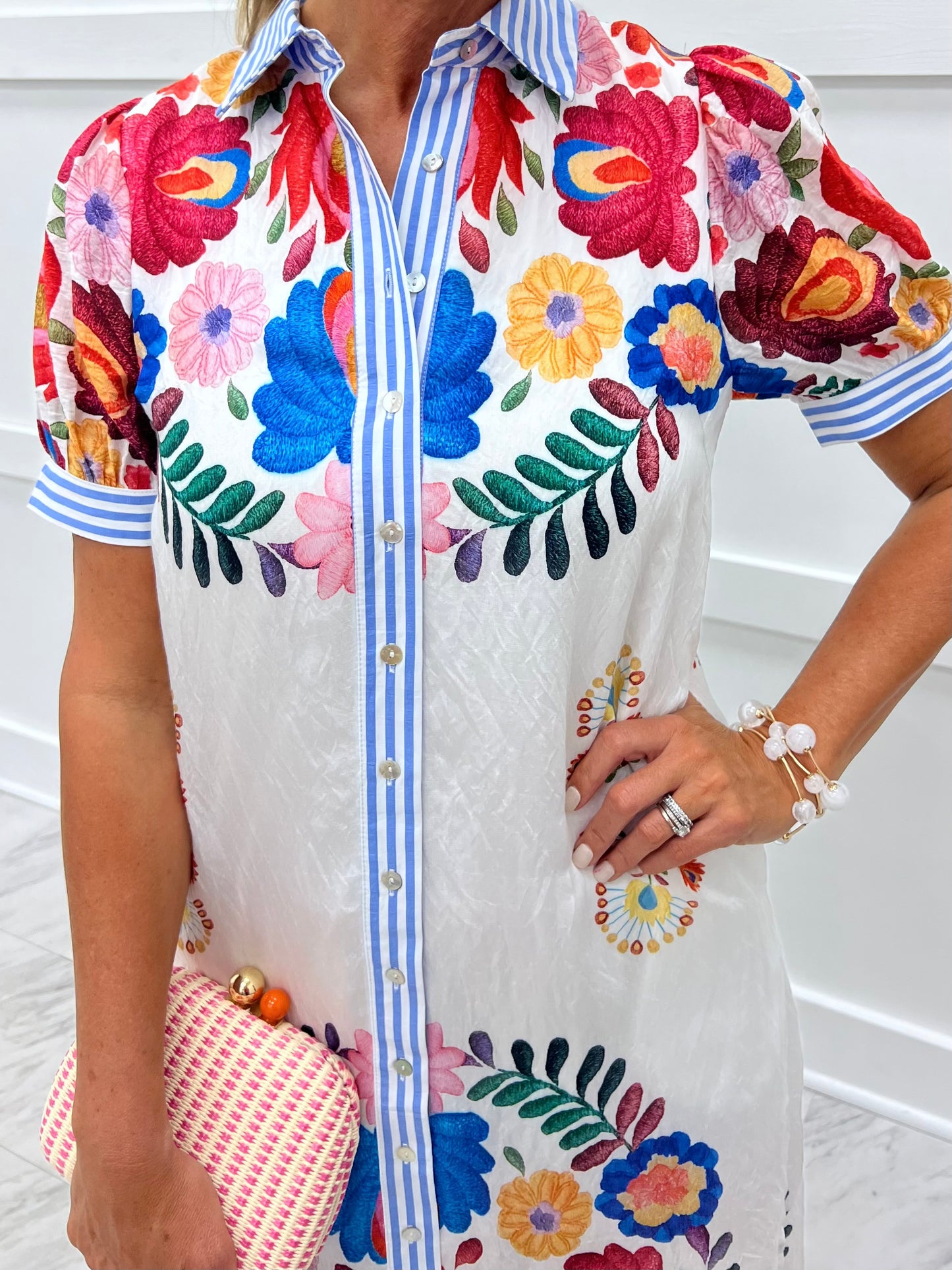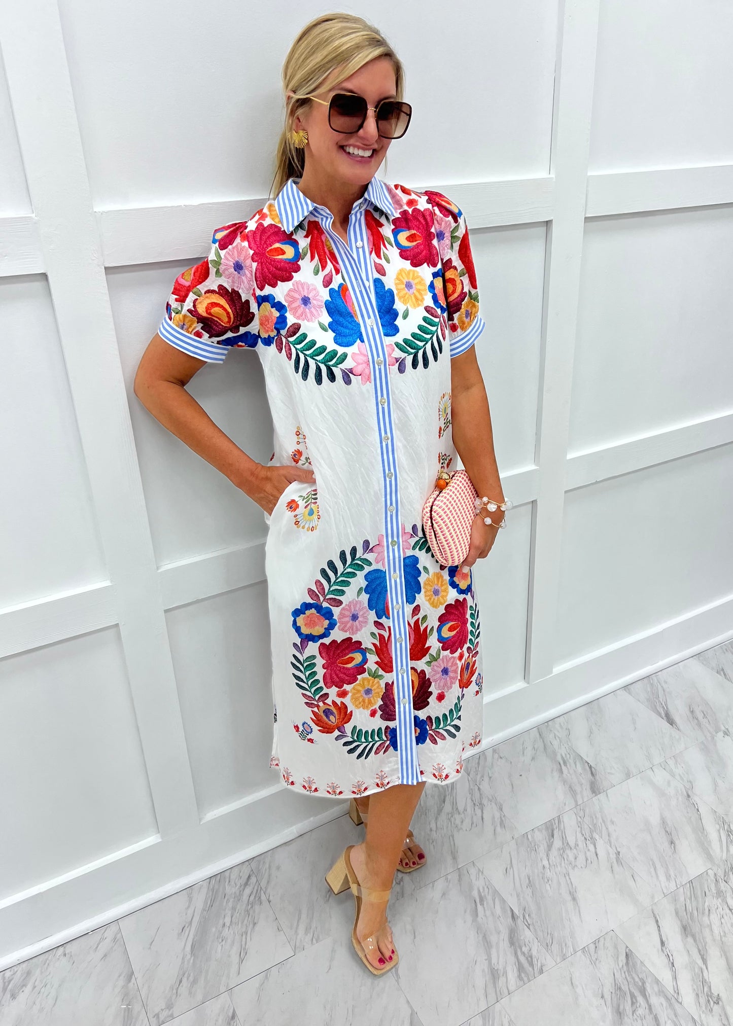 Tulum Flower + Stripe Midi Dress