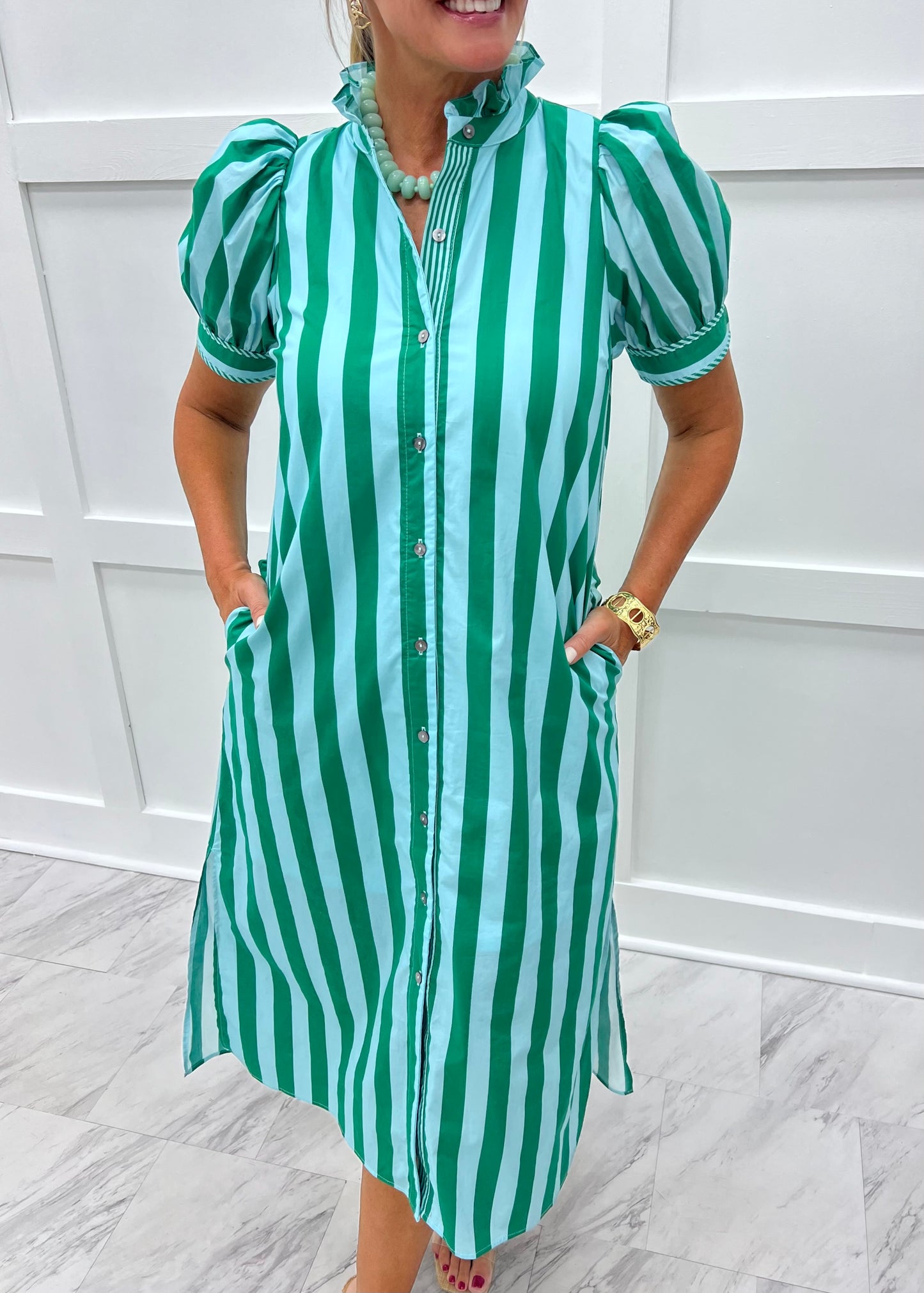 Keely Green Stripe Dress