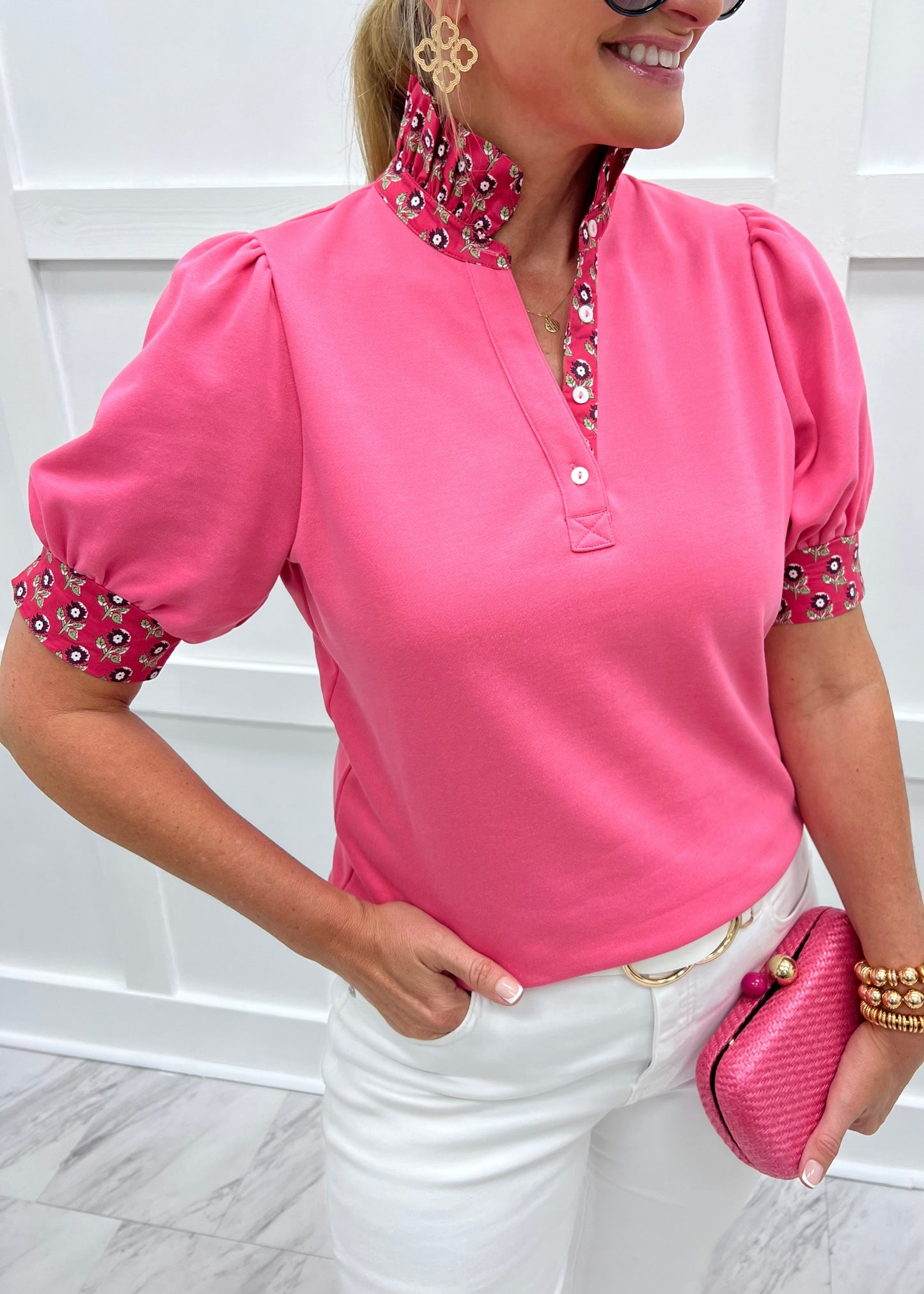 Sea Island Flower Collar Top (Pink)