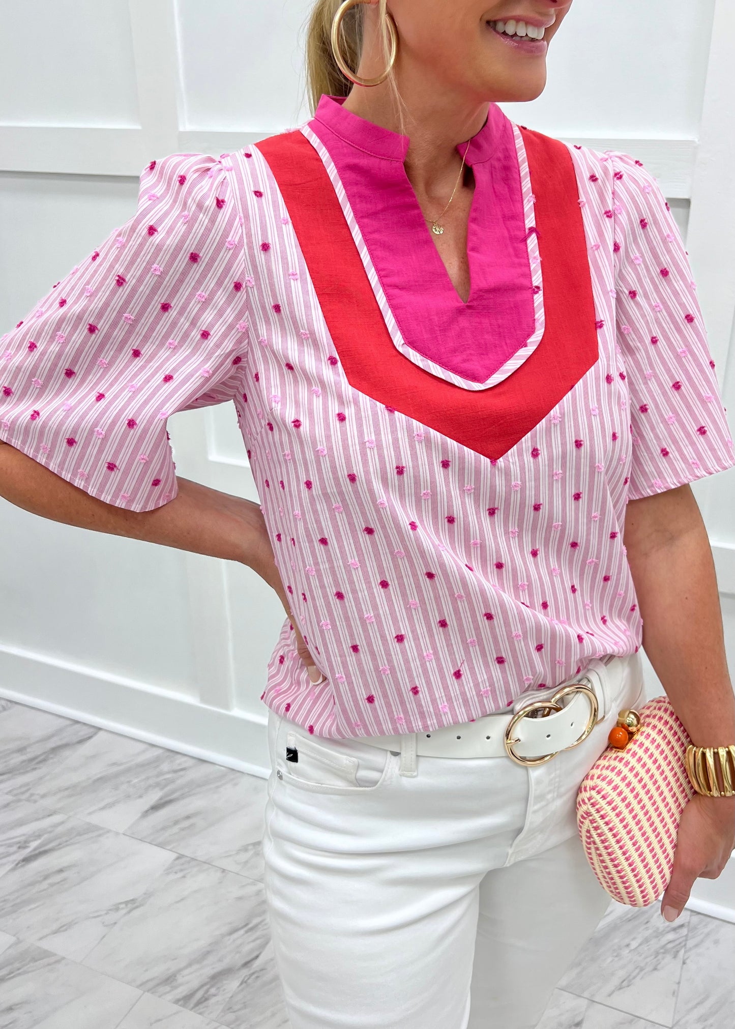 Serafina Stripe + Embroidered Top