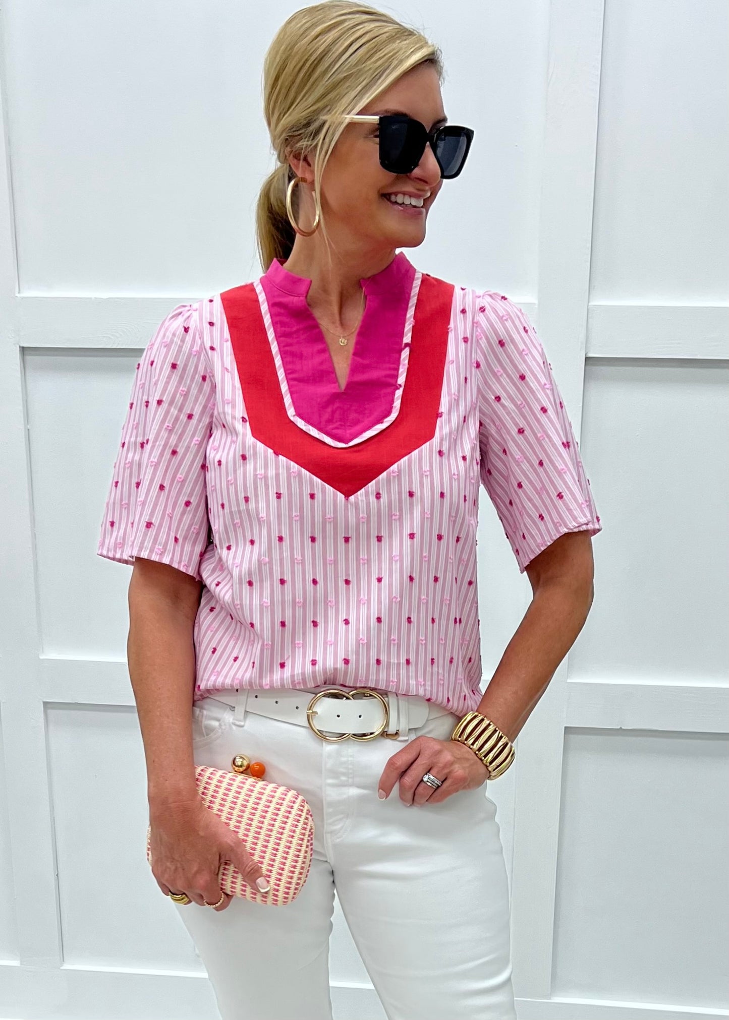 Jules Pink Stripe + Dot Top