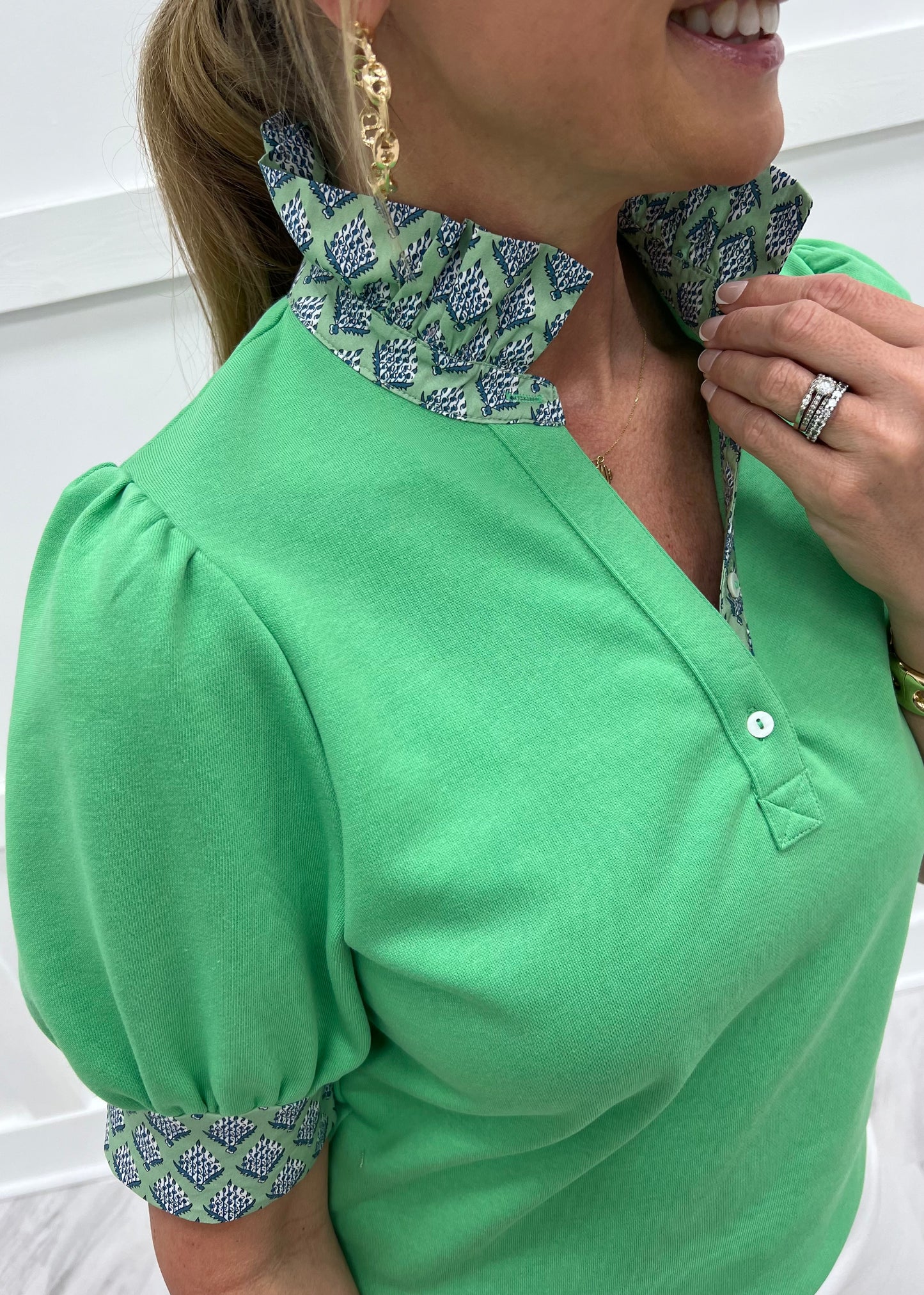 Sea Island Flower Collar Top (Green)