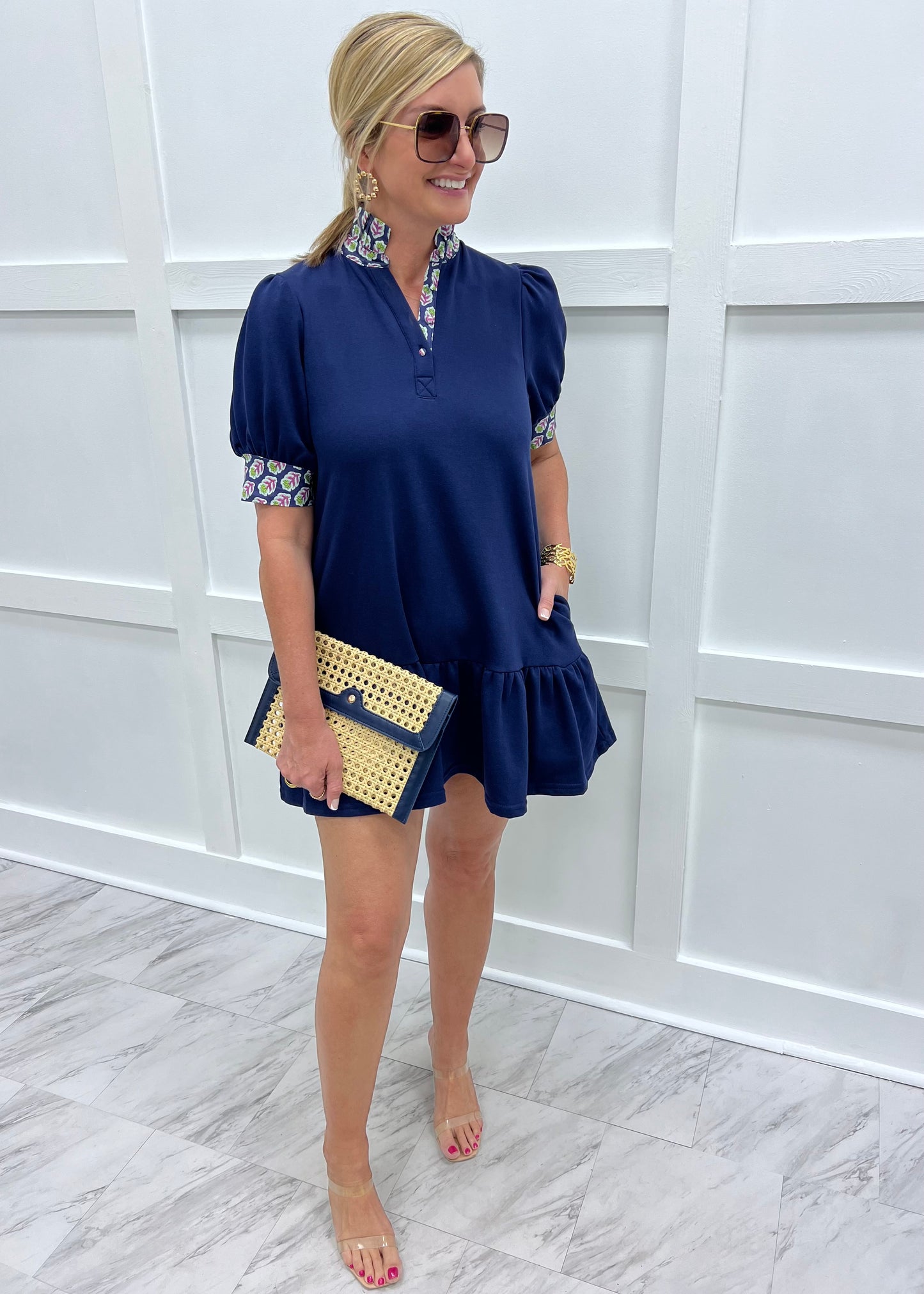 Charleston Flower Collar Dress (Navy)