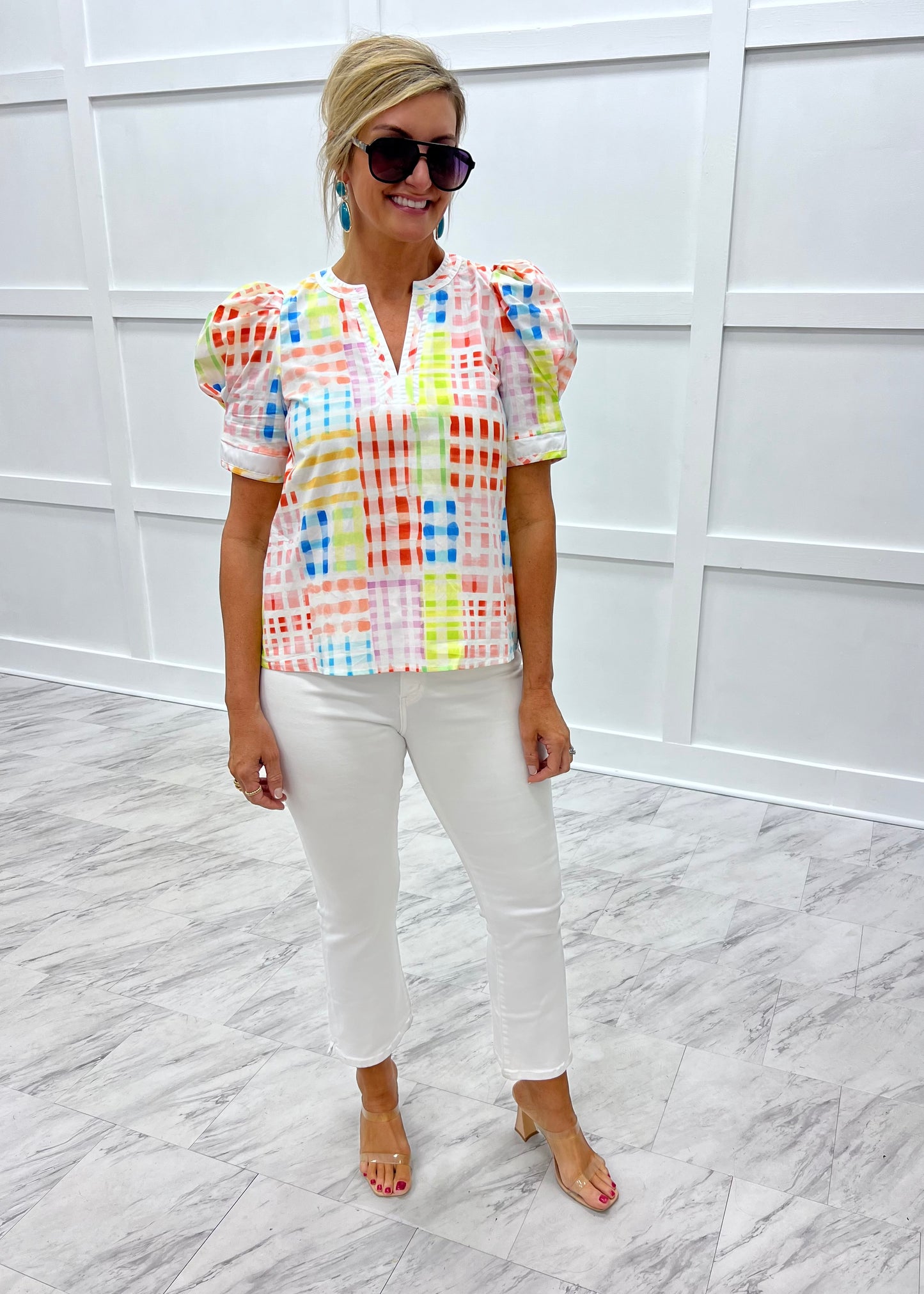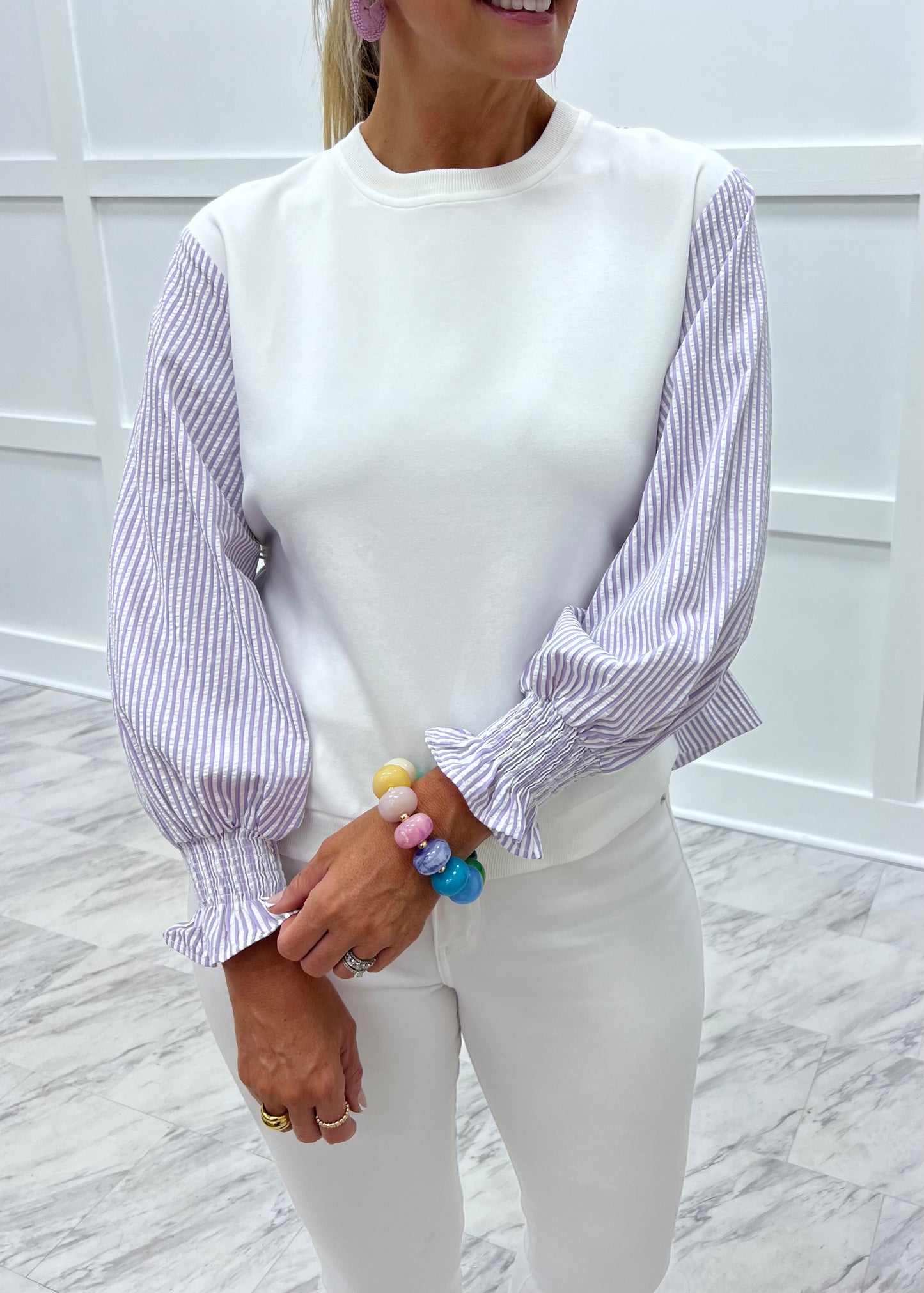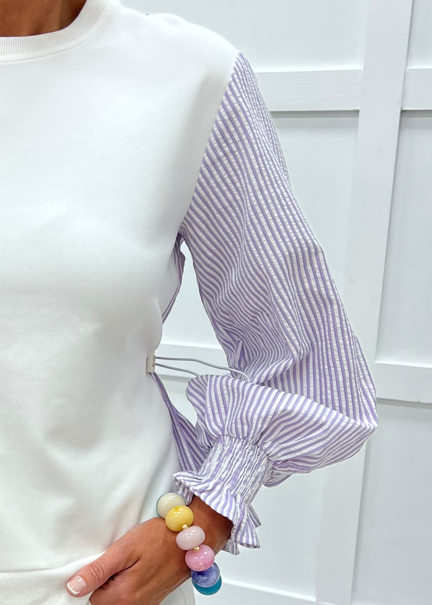 Storie Seersucker Sleeve Top (Off White)