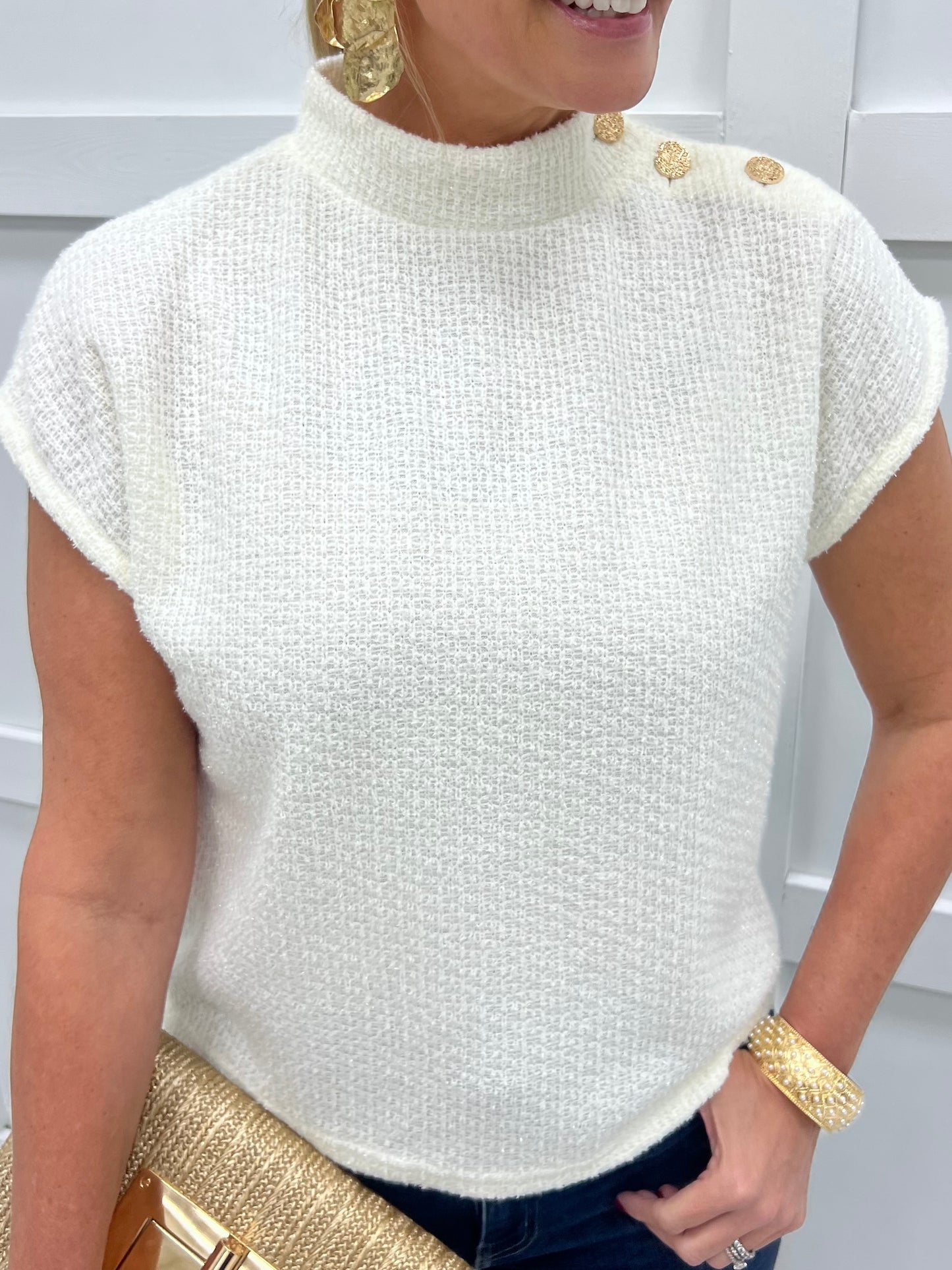Winter White Gold Button Sweater