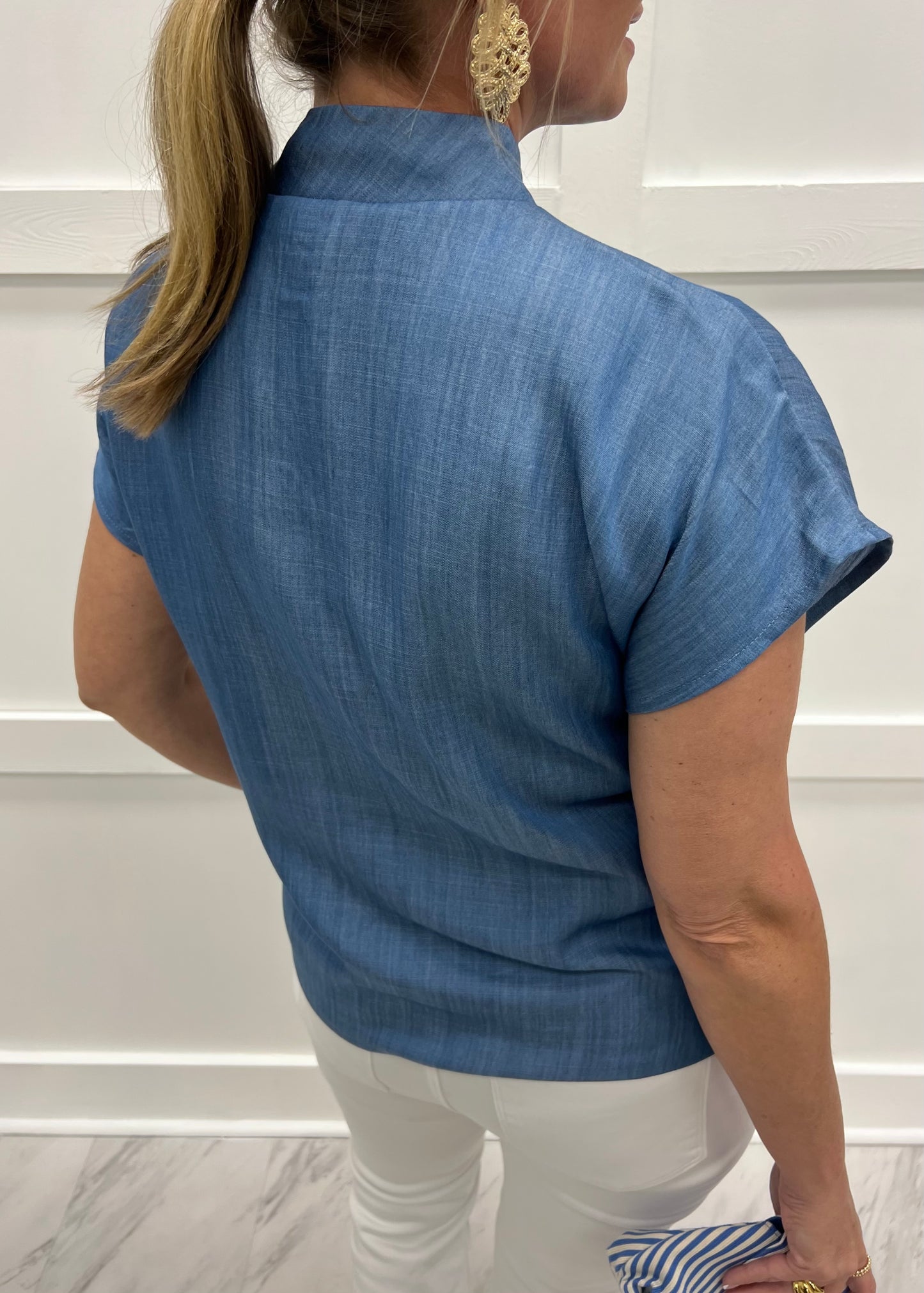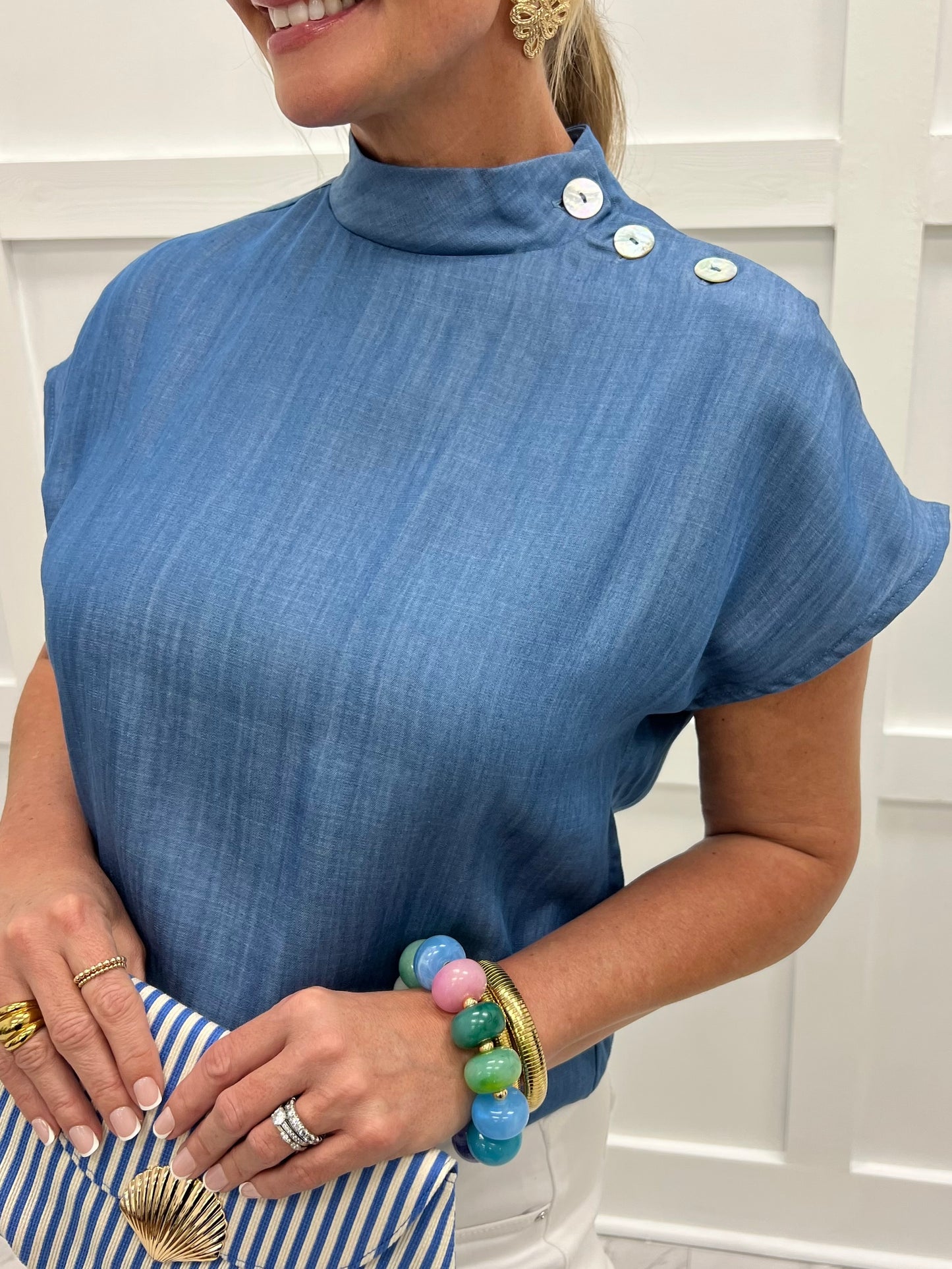 Saylor Denim Button Detail Top