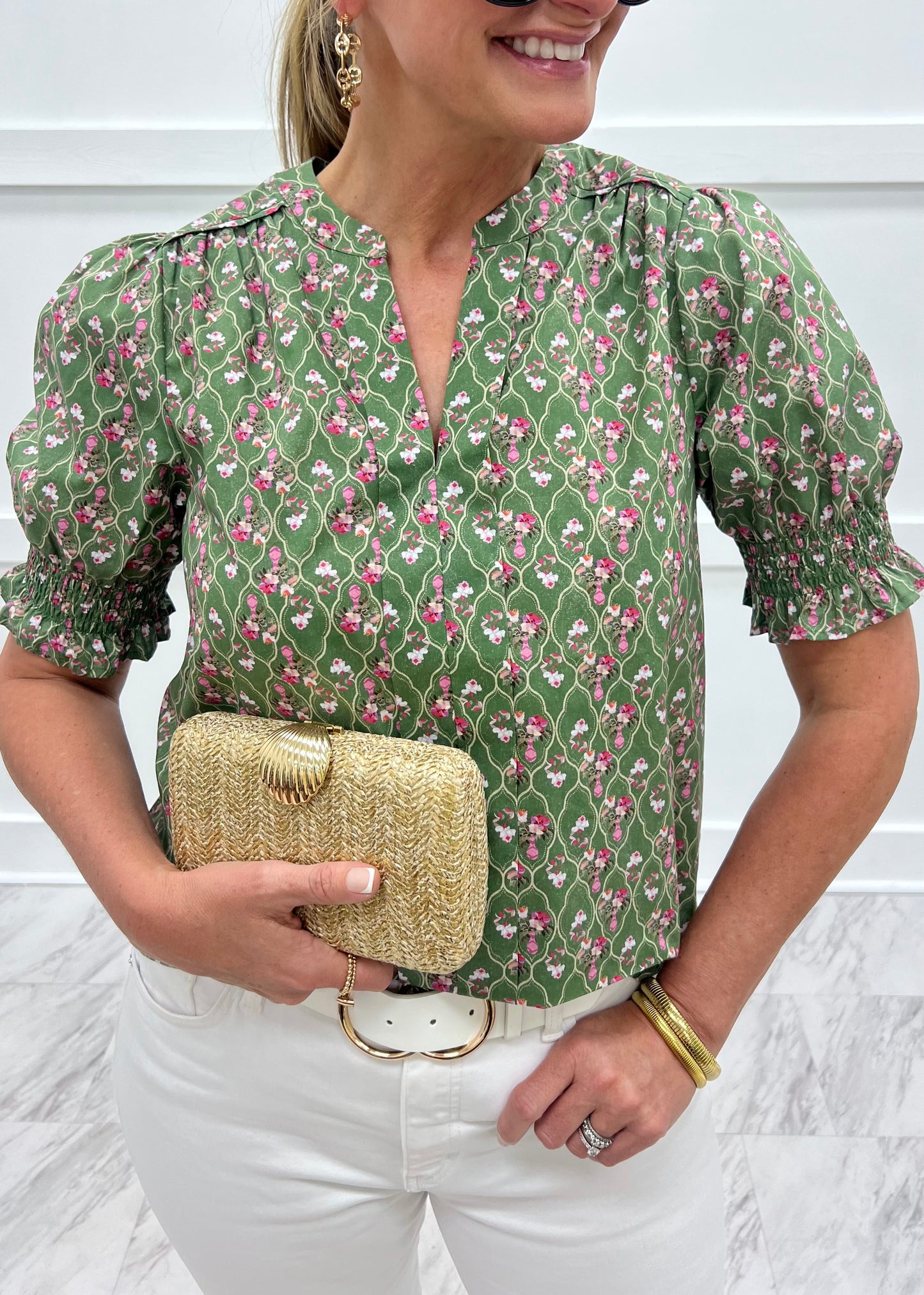 Sea Island Flower Collar Top (Green)