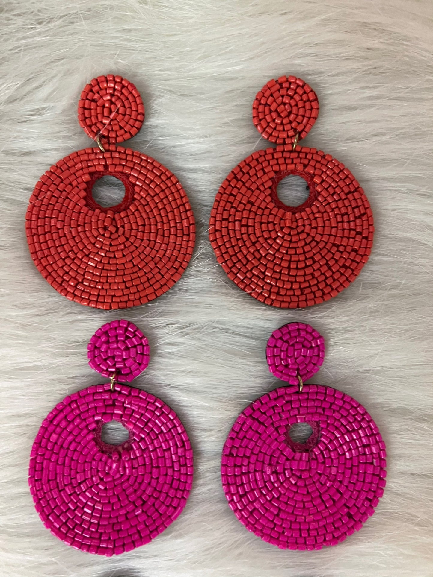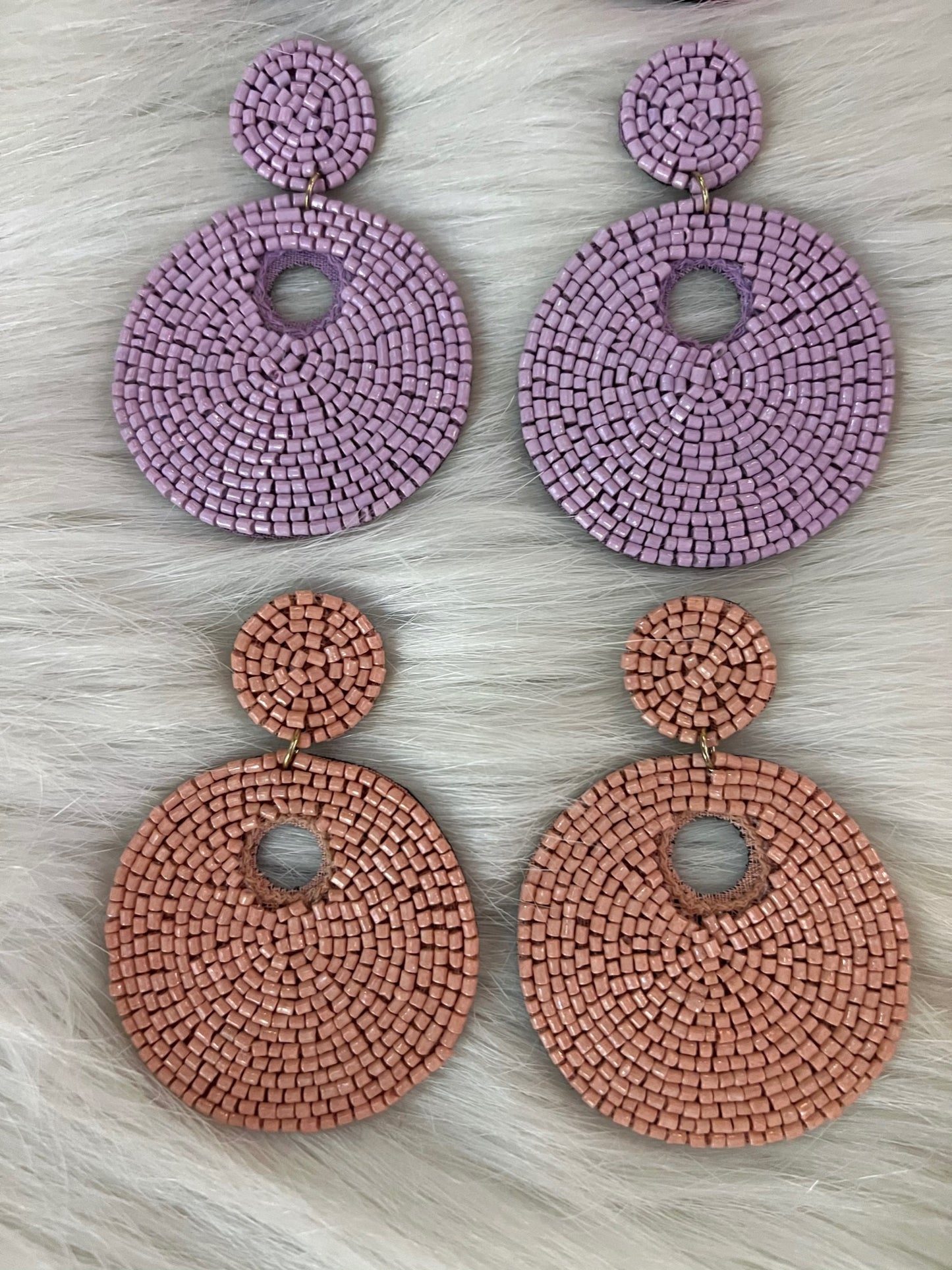 When your outfit calls for a statement making pair of earrings, opt for this fun beaded pair! Double circles shape this pair of earrings, featuring a post back closure and felt backing. This style is not only stunning but also super lightweight! We love that they can be worn casually with jeans and a t or glammed up for an evening out! This will be your new go to pair!
