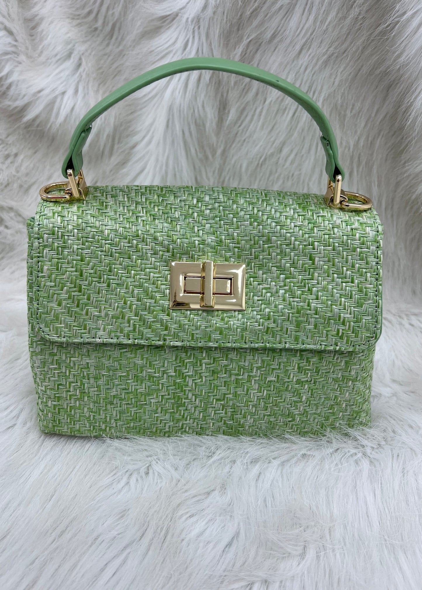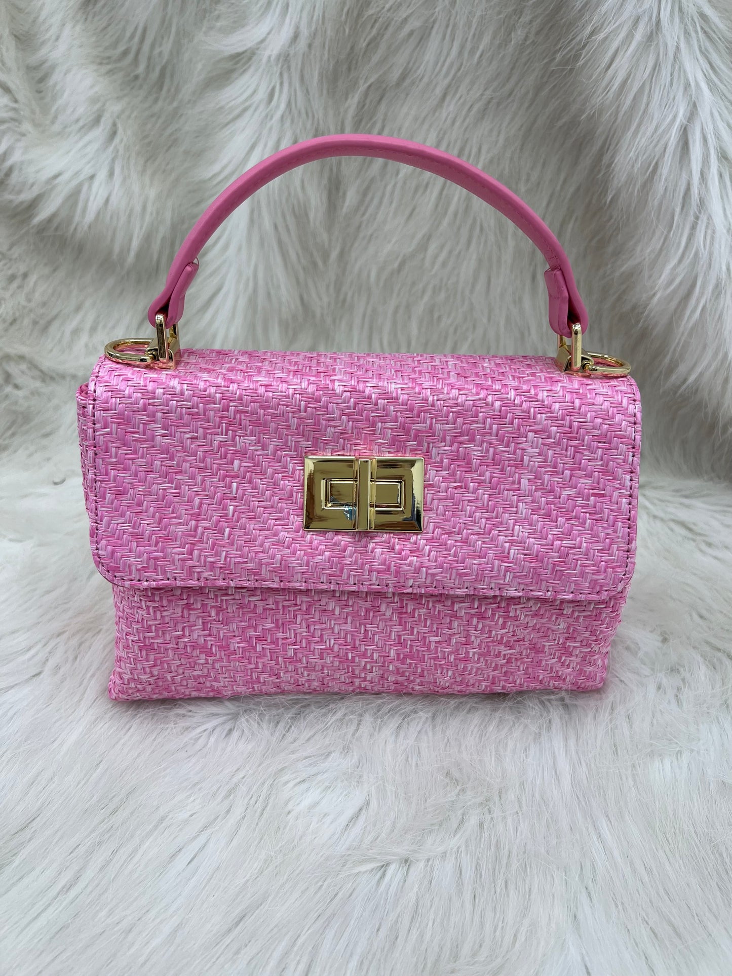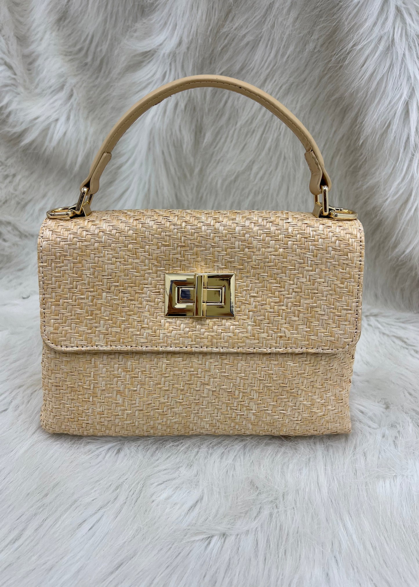 Ladylike with a modern twist, this is the perfect handbag for you spring + summer wardrobe refresh! This bag has a woven design, top handle, and gold hardware make it a statement piece for any occasion. The structured shape and turn-lock closure bring a touch of sophistication, ensuring you stand out with style.