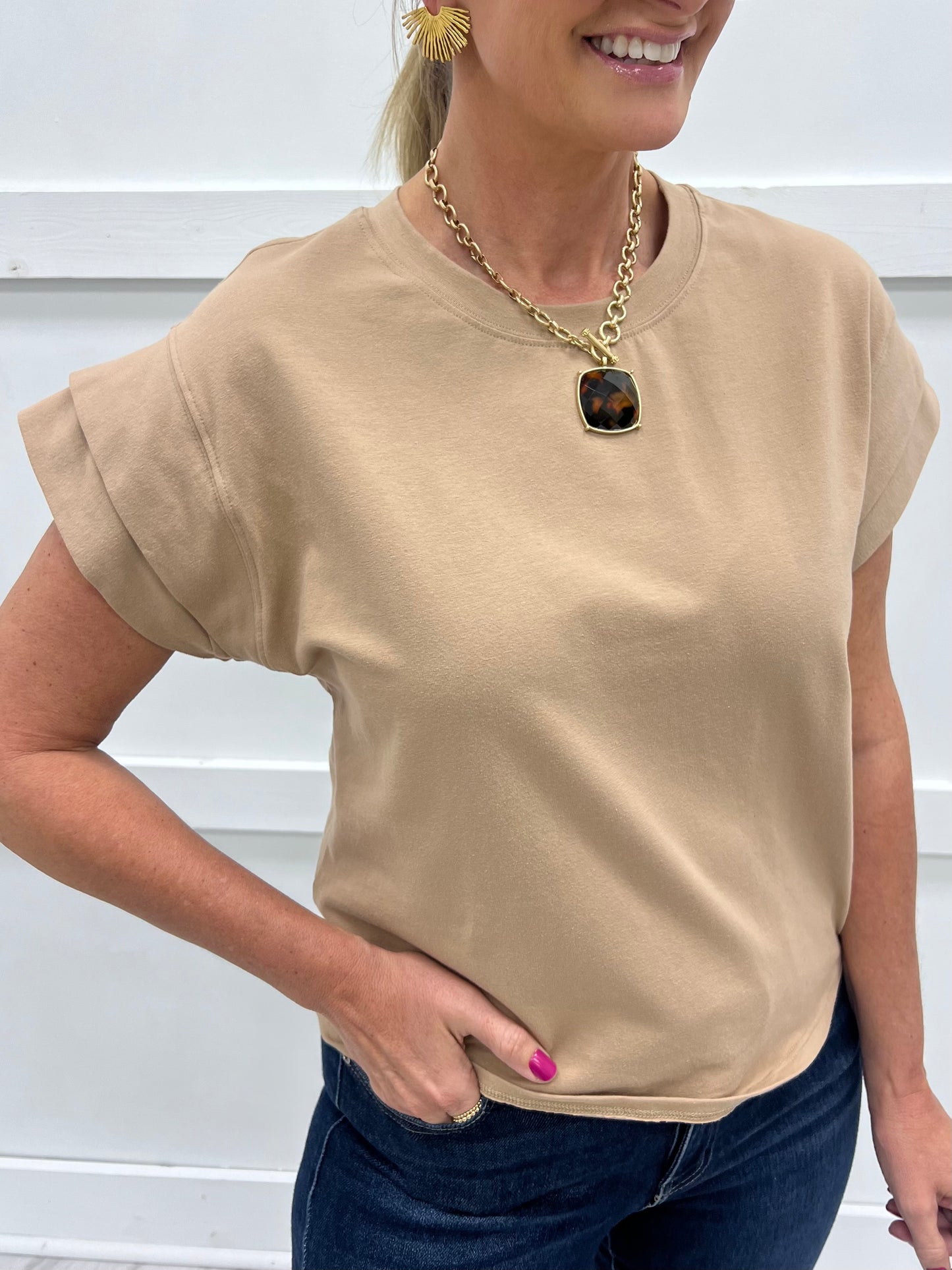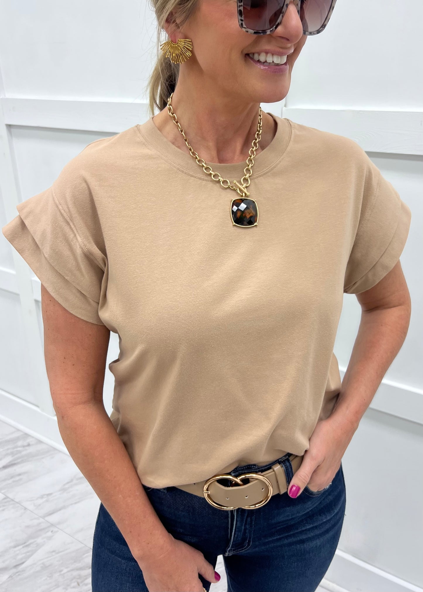 Stay on trend this season with our Hayes Top! Mocha colored knit fabric shapes this top featuring layered dolman cap sleeves, around neckline and a relaxed fit. This top is soft + stretchy and will be the perfect addition to your wardrobe! Just add denim and pile on the accessories! Model is 5'8'' and wearing a size small.
